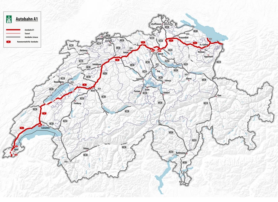 Die A1 verbindet Genf mit St. Gallenund endet in St. Margrethen zur Grenze AT.